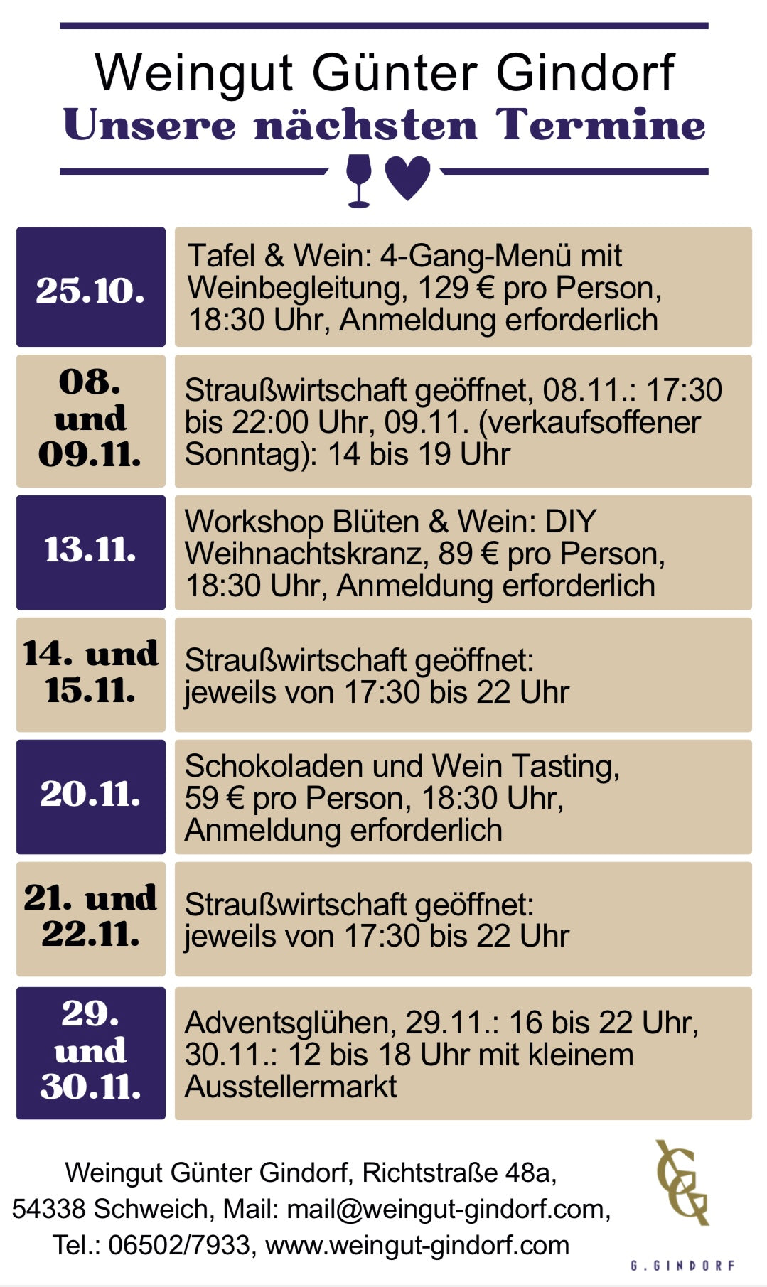 #facettenreichevents #lagenliebe #weingutgindorf #weinbar #mosel #schweich #weinerlebnis #weintasting #eventsmosel #moselliebe #genussmomente #weinfest #adventsglühen #strausswirtschaft #weingut