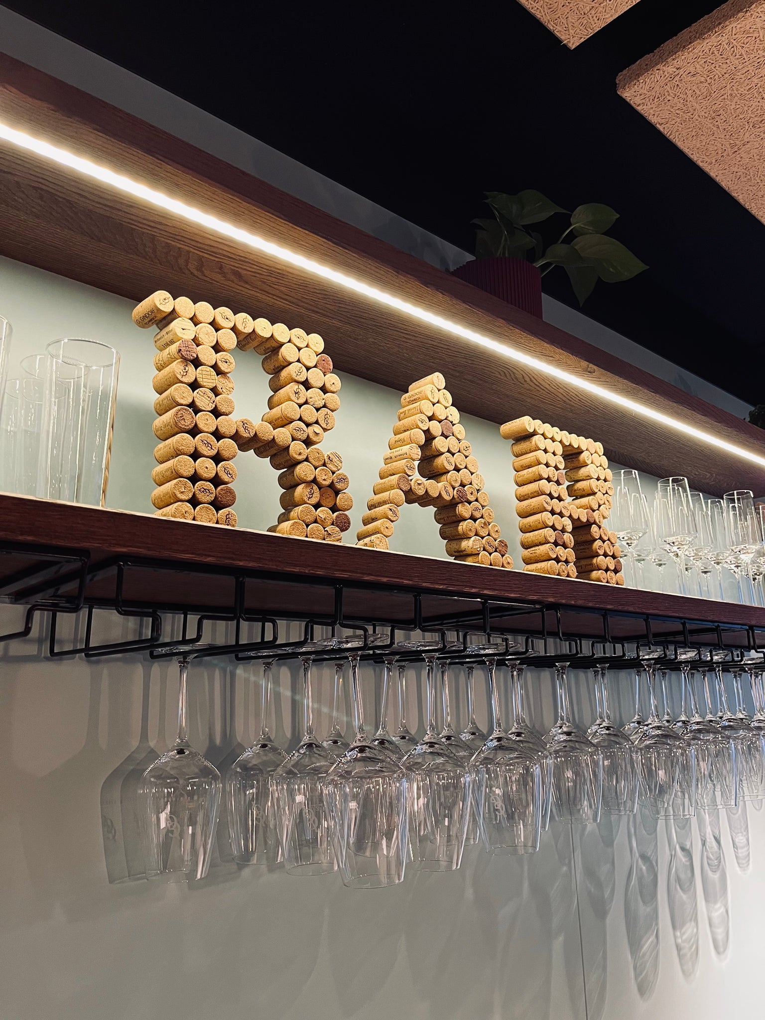 Die Weinbar verbindet modernes Design mit Moselcharme: warme Naturtöne, stilvolle Details und eine offene Raumgestaltung schaffen eine Atmosphäre, die sowohl gemütlich als auch elegant ist.